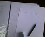近くで描くと目鼻の位置がおかしくなってしまうのデス。なので、何回か原稿にから目を離してみるのですが、なかなかすんなり描けずに何度も書き直し…