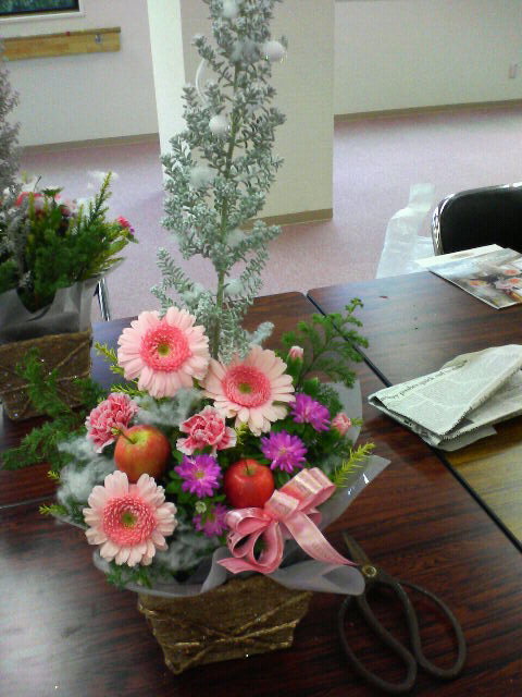 始めにセットされた花でクリスマス様のフラワーです(^-^ゞ