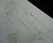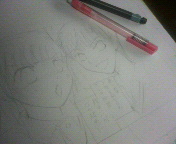 やっぱ別の紙に描いてからトレースしました。(つまりコピー用紙に描いて裏をえんぴつで黒く塗って表から線をなぞり原稿用紙に絵を写すという方法ですけど…)トレース台が欲しいこの頃。